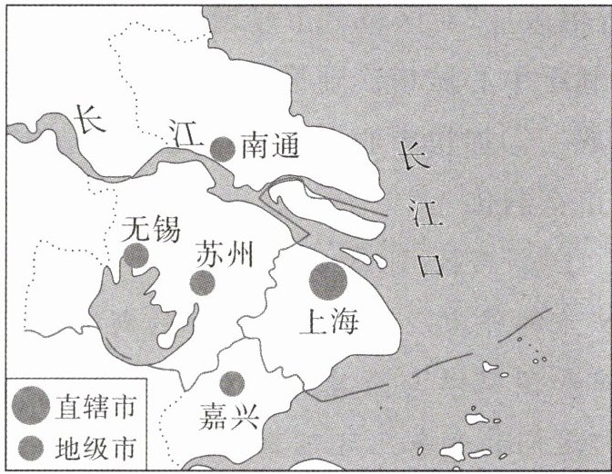 都市圈是城市群内部以超大、特大城市或辐射带动功能强的大城市为中心,以1小时通勤圈为基本范围的城镇化空间形态。近年来,上海正主动融入长江三角洲区域的协同发展,构建上海大都市圈,打造具有全球影响力的世界级城市群。如图所示为上海大都市圈局部区域示意图。据此完成第8、9题。