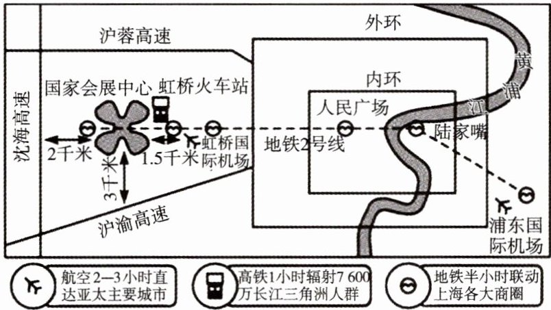 14. 国家会展中心选址在上海虹桥商务核心区的原因是( )