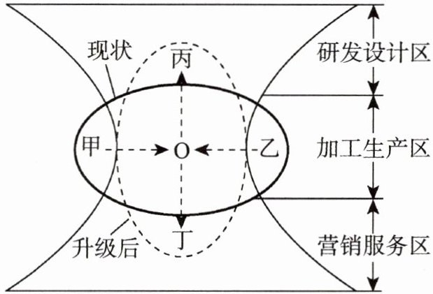 如图所示为我国东部沿海地区加工贸易产业转型升级途径示意图,图中甲、乙、丙、丁、O代表加工贸易价值链中不同类型的企业。据此完成第18、19题。