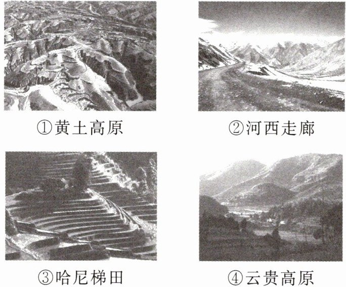 3.A 【解析】①黄土高原水土流失严重,会出现土地荒漠化现象;②河西走廊位于我国西北地区,土地荒漠化严重;③哈尼梯田通过兴修梯田,改造地形使之适合耕作,有效减少了水土流失,不会出现土地荒漠化现象;④云贵高原地形崎岖,人类活动破坏植被后,流水侵蚀会导致土地石漠化严重,A正确。 4.B 【解析】过度开垦、过度放牧属于人为原因,④错误。