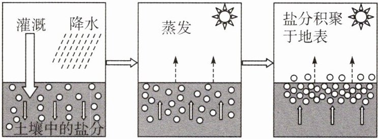 (2024·台州高二期中)由于不合理的人类活动而引起耕作土壤盐渍化的过程,被称为土壤次生盐渍化。如图所示为我国东部季风区某地土壤次生盐渍化形成过程示意图。据此完成第18、19题。