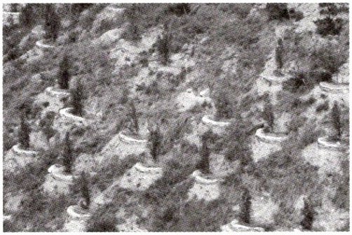 我国生态脆弱区类型多,分布广。为治理生态脆弱区,人们在坡地上大量修筑如图所示的鱼鳞坑,在坑内栽种植被,由此生态环境问题得到明显改善。鱼鳞坑是在山坡上挖掘的有一定蓄水容量的土坑,多呈半月形沿等高线排列,且上下鱼鳞坑呈“品”字形交错分布。据此完成第3—5题。