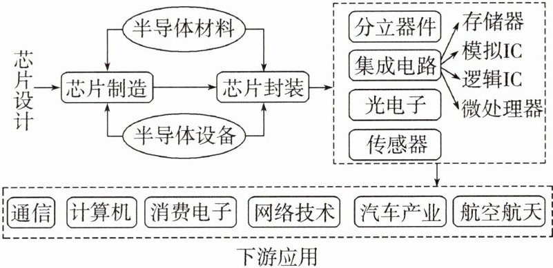 材料一 从 20 世纪 70 年代半导体产业在美国形成规模以来,半导体产业总共经历了两次大规模的产业转移:第一次是从 20 世纪 80 年代开始,由美国本土向日本转移;第二次是 20 世纪 90 年代末期到 2000 年,随着半导体产业不断发展与升级,美国逐步把 IC(集成电路,也称芯片)的设计与制造进行分离,并将制造业由美国、日本向韩国以及中国台湾地区转移。