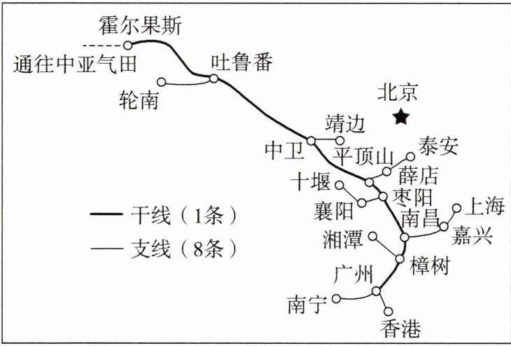 “西气东输”工程是我国重要的跨区域资源调配工程,其中“西气东输”二线工程是我国第一条引进境外天然气资源的特大型管道工程。如图所示为“西气东输”二线工程线路示意图。据此完成第5—7题。