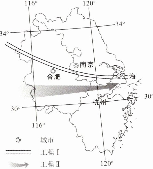 2. 工程Ⅰ、Ⅱ对上海市的有利影响是 ( )