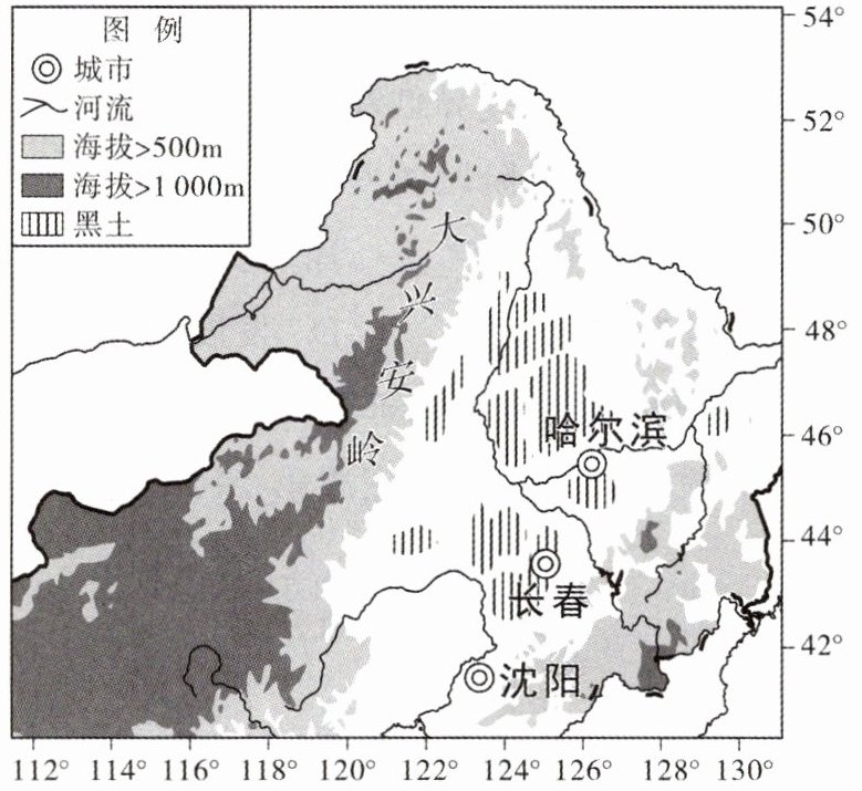 材料二 大兴安岭是我国东北地区重要的地理分界线。如图所示为东北地区局部区域图。