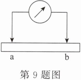 9. 将电流表的 a、b 两极置于离体坐骨神经(含传入和传出神经)上,在某一位点给予适宜电刺激,观察到指针发生了两次偏转,其中第一次发生的偏转如图所示。