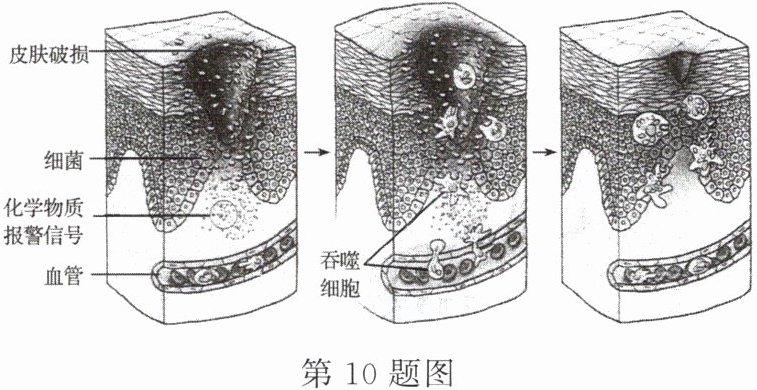 10. (2025·台州第一中学高二期末)如图所示,人的皮肤损伤后,往往会引起局部炎症,请据图回答下列问题: