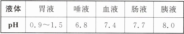 (4)从表格看出,不同消化液的 $ pH $ 存在明显差异,这反映的问题是______________________________。
