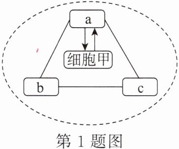 1.C 【解析】若 a、c 之间是双向箭头,且 a、b、c 是内环境的组成成分,则双向交流的只有血浆和组织液,A 正确;若 b 所处管道的一端为盲端,则为毛细淋巴管,b 为淋巴,B 正确;该图为人体内各液体成分之间的关系,人体细胞不含有液泡,C 错误;若细胞甲为组织细胞,则 a 为组织液,毛细血管壁细胞直接生活的环境是血浆和组织液,D 正确。