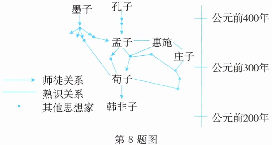 8. 如图是某学者绘制的诸子百家关系示意图。他意在说明 ( )