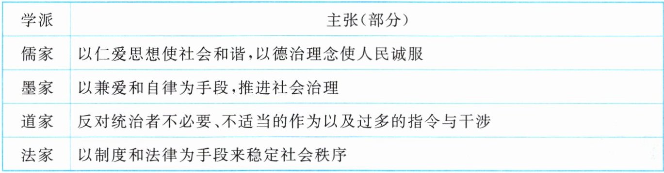 7. 所示表格是百家争鸣时期一些学派的主张(部分)。据此可知,百家争鸣 ( )
