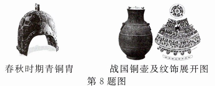 8. 考古学家在许多战国时期墓葬的考古中发现了大量青铜器。观察下图,可以推测与战国历史有关的信息是( )