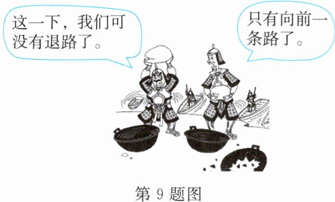 9. 如图漫画中,将士砸掉烧饭的锅,凿沉战船,以示决一死战。与此相关的战役是( )
