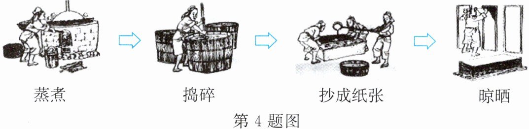 4. 下列组图展示了我国古代一项伟大发明的部分工艺流程。这项发明( )