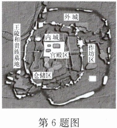 6. 如图是良渚古城遗址的城址布局,该城址( )
