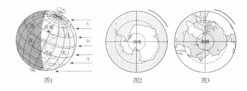 (2)极昼 极夜 北极圈 南极圈
