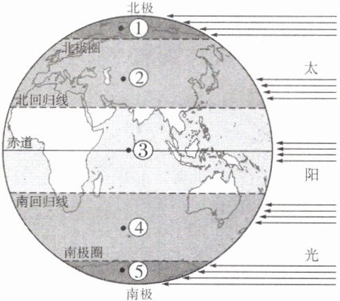 6. 读太阳光照和地球上的温度带示意图,下列说法不正确的是( )