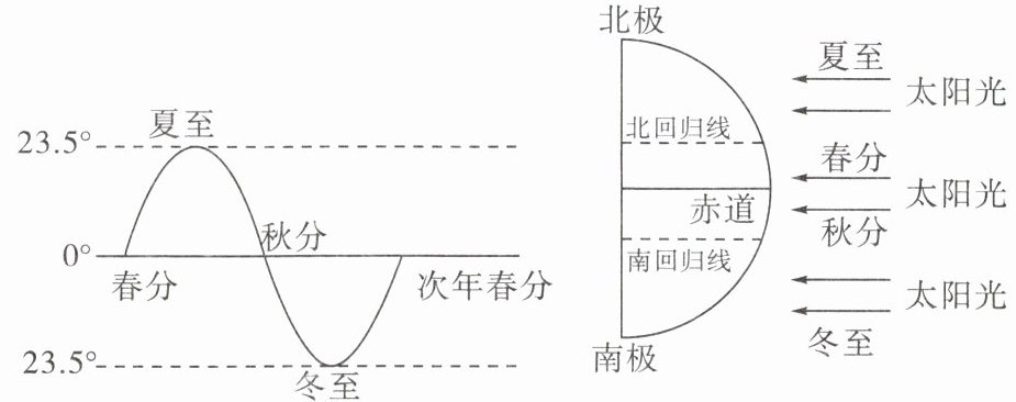 (1)太阳直射点移动的范围是____;太阳直射点位于南回归线上的节气是____,小明的家乡____(填“有”或“无”)阳光直射现象。