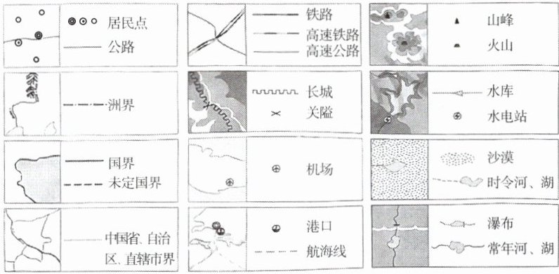 (1)通过图例识别地图中的地理__________和__________,并描述它们的空间__________特征。
