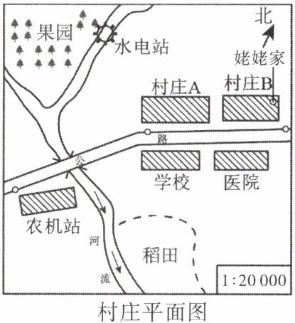 6. 寒假将至,小雅同学计划寒假前往姥姥家。为了假期生活更加充实,小雅绘制了姥姥家所在村庄的平面图,并做了假期日程安排。读图,完成下列要求。