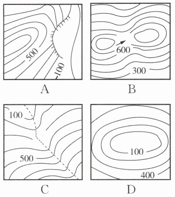 1. 新形式·组图 读图,下列四幅图中表示山谷的是( )