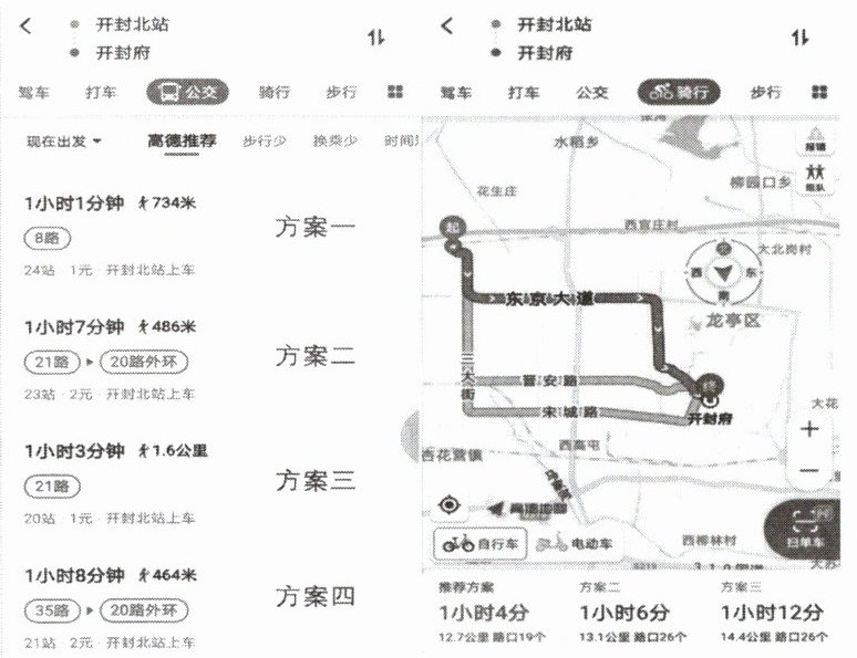 (4)图中查询中看到的出行方式有公交、__________、__________、步行、骑行。
