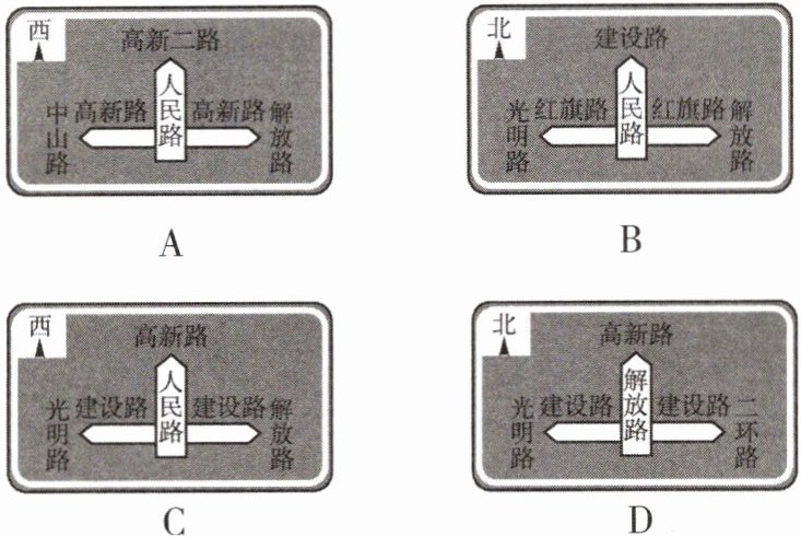 2. 当车辆行驶到图中“●”标识位置时,最有可能看到的交通指示牌是( )