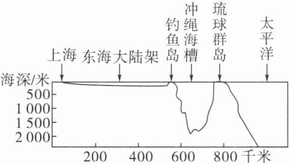 4. 自古以来,钓鱼岛及其附属岛屿就是我国的固有领土。读我国钓鱼岛附近地形剖面示意图,钓鱼岛地处我国( )