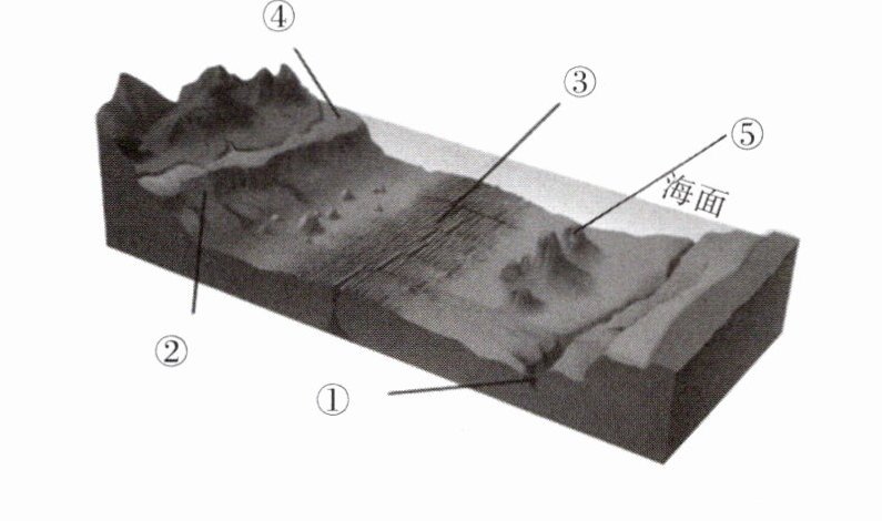 1.海沟 2.大陆架 3.大陆坡 洋盆 4.洋中脊