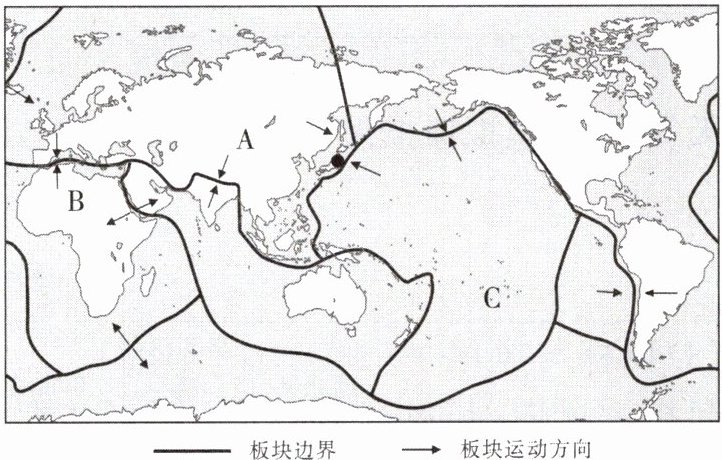 [2024临沂]2024年1月1日,在日本西海岸发生了7.6级地震。读六大板块分布示意图,完成8~9题。