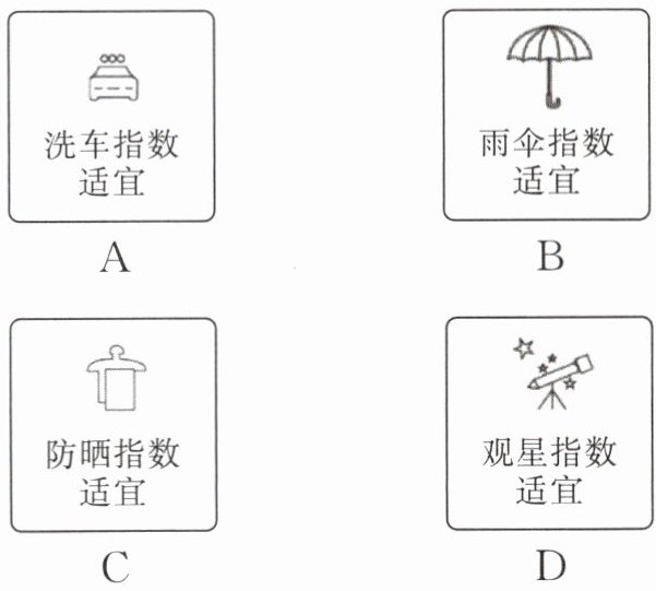 7. (教材 P71 图 4.6 改编)生活指数是指气象部门根据气象预测而发布的为居民生活提供的参考。下图中表示 10 月 2 日合肥生活指数的是( )