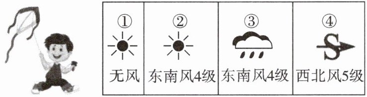 3. 如果某日风向和风力为西北风 5 级,风筝起飞时,应拉着绳子向______方向快速跑( )