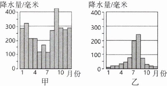 1. 下面关于北半球甲、乙两地降水资料的叙述,错误的是( )