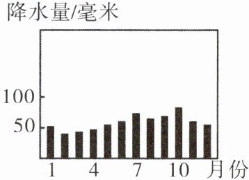 1. 读图分析,下列符合伦敦降水特点的是( )