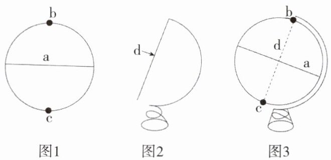 B.图 2 所示,将铁丝弯成半圆,所弯的半圆要比乒乓球略大些。图中 d 代表地轴