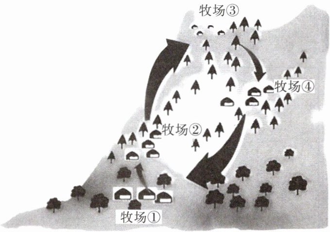 [2023 衡阳]新疆天山地区的牧民,有迁移轮牧的历史传统。读天山迁移轮牧过程示意图,完成 4~5 题。