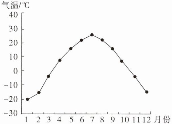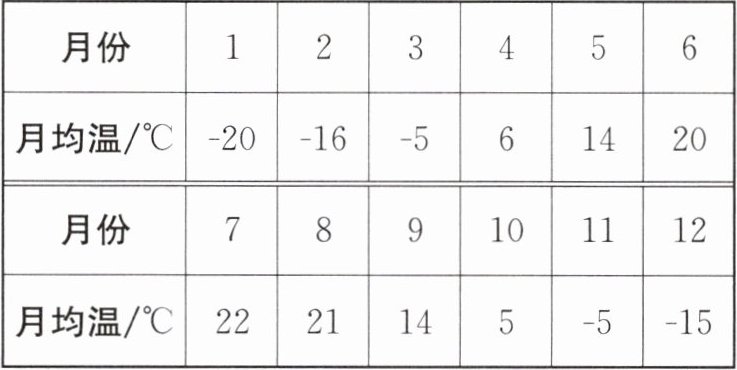[2023 株洲]读哈尔滨多年月平均气温表和气温曲线图,完成 1~2 题。