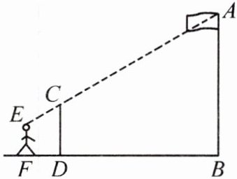 3. 为测量操场上旗杆的高度,设计的测量方案如图所示。标杆高度 $ CD $ 为 $ 3 \, m $,标杆与旗杆的水平距离 $ BD $ 为 $ 15 \, m $,人的眼睛与地面的高度 $ EF $ 为 $ 1.6 \, m $,人与标杆 $ CD $ 的水平距离 $ DF $ 为 $ 2 \, m $,$ E $、$ C $、$ A $ 三点共线,求旗杆 $ AB $ 的高度。