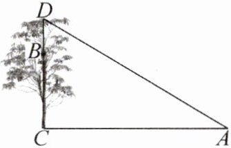 2. 如图,有两只猴子在一棵树($ CD $)上离地面 $ 5 \, m $ 的点 $ B $ 处,它们都要到 $ A $ 处的池塘去喝水,其中一只猴子沿树爬下走到离树 $ 10 \, m $ 的 $ A $ 处,另一只猴子爬到树顶 $ D $ 后沿直线 $ DA $ 到达 $ A $ 处。若两只猴子所经过的路程相等,则这棵树高多少米?