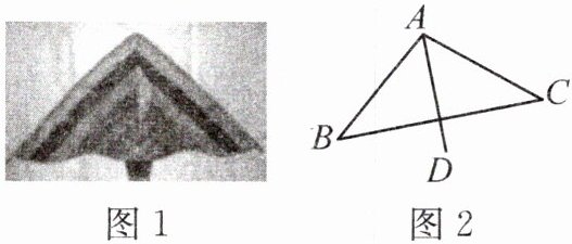 5. [2024·内江模拟]某学习小组计划制作一个如图1所示的风筝,图2是其示意图,已知两条侧翼$AB$、$AC$的长都为$60cm$,$\angle BAC = 100^{\circ}$,$AD$平分$\angle BAC$,则$B$、$C$两点间的距离为______$cm$。(参考数据:$\sin 50^{\circ}\approx 0.77$,$\cos 50^{\circ}\approx 0.64$,$\tan 50^{\circ}\approx 1.19$)
