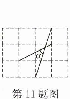 11. [2024·榆树市校级模拟]如图,在$3×4$的正方形网格中,两条经过格点的线段相交形成了锐角α,则夹角α的正弦值为____.