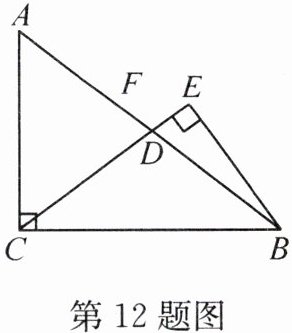 12. 如图,在$Rt\triangle ABC$中,$∠ACB=90^{\circ },D$是$AB$的中点,连结$CD$,过点$B$作$CD$的垂线,交$CD$的延长线于点$E$.若$\tan A=\frac {4}{3}$,则$\cos ∠DBE$的值为____.