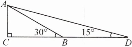构建几何图形解决代数问题是“数形结合”思想的重要应用.例如,在计算$\tan 15^{\circ }$时,可构造如图所示的图形.在$Rt\triangle ACB$中,$∠C=90^{\circ },∠ABC=30^{\circ },AC=x(x>0)$,延长$CB$至点$D$,使得$BD=AB$,连结$AD$,易知$∠D=15^{\circ },CD=BD+BC=$ $AB+BC=2x+\sqrt {3}x$,所以$\tan 15^{\circ }=$ $\tan D=... ... $