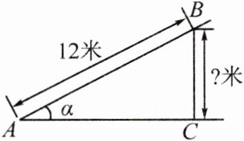 1. 如图是某博物馆大厅电梯的截面图,$AB$ 的长为 $12$ 米,$AB$ 与 $AC$ 的夹角为 $\alpha$,则高 $BC$ 是( )