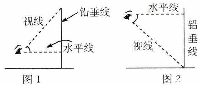 俯角:测量时,________,视线与水平线的夹角叫做俯角,如图2.