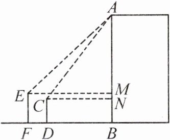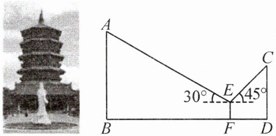 ①他们在木塔和雕像之间选择一观景台EF,在点E处测得木塔顶部A的仰角为30°,测得雕像顶部C的仰角为45°;