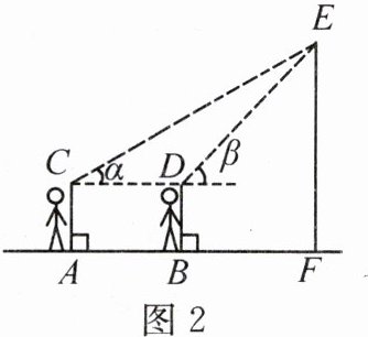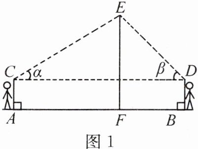 备注:两位同学的观测点C、D到地面的距离相等,线段EF长表示该树的高度,点A、B、C、D、E、F均在同一平面内.