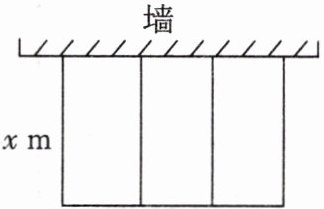 (3)如图,学校计划一边靠墙,其余边用篱笆围成三小块面积均为$24\space m^{2}$的矩形苗圃,中间用两道篱笆隔断.设每小块苗圃垂直于墙的一边长为$x\space m$,当$x$为何值时,所用篱笆的总长度最短?最短长度是多少?