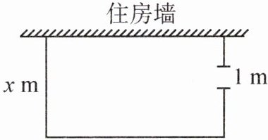 5. 如图,有一道 26 m 长的篱笆,要围成一边靠住房墙(墙长 12 m)的面积为$80m^{2}$的矩形花园,且垂直于住房墙的一边留一个宽 1 m 的门,设垂直于住房墙的其中一边长为$x$m,则可列方程为___________.